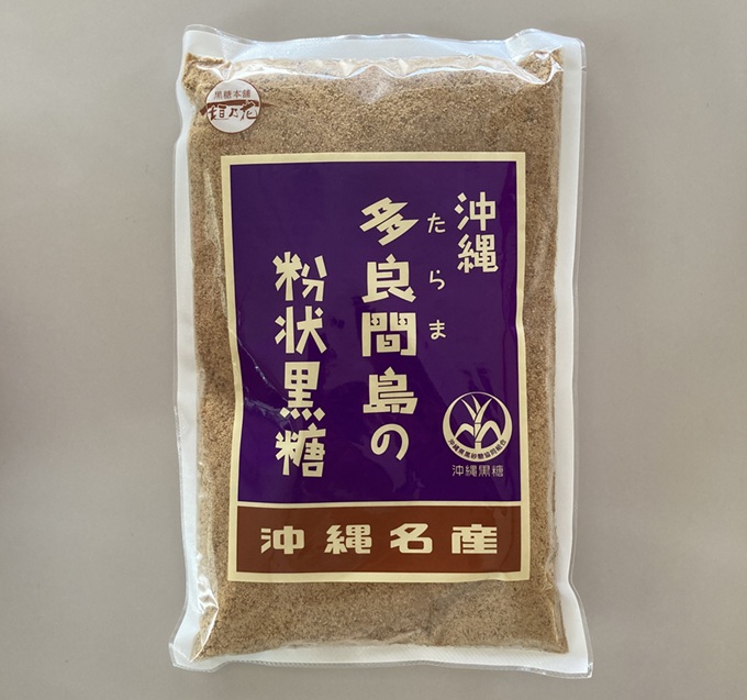 隆起珊瑚礁で出来た多良間島で栽培されたサトウキビ100%から取れた黒糖です。多良間島産の黒糖を粉末タイプにしました。お料理やお菓子作りに最適です。